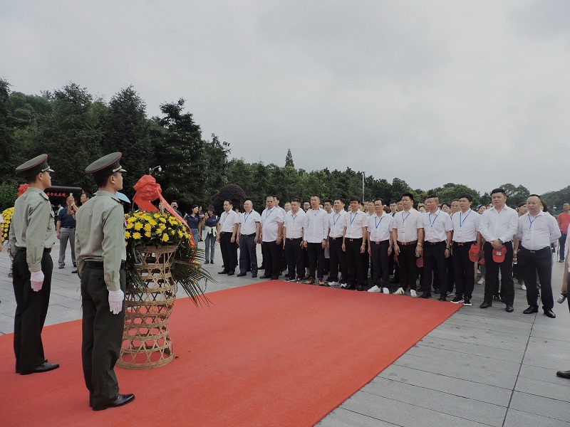 7月13日上午公司全體黨員職工來到毛主席銅像廣場,給毛主席銅像敬獻花籃并合影留念