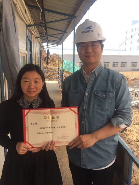 天馬建設(shè)集團2017年第一季度安全生產(chǎn)優(yōu)秀資料員:中新環(huán)保產(chǎn)品研發(fā)基地項目資料員——吳玉婷