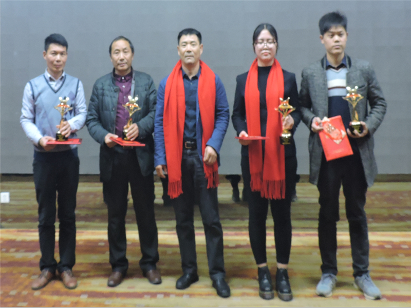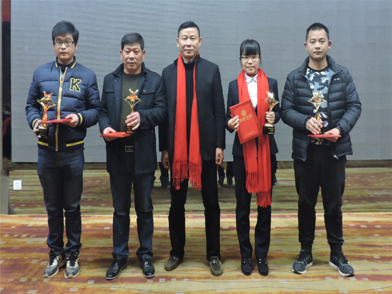 天馬建設(shè)集團(tuán)“2016年度優(yōu)秀員工——天馬之星獎”:“鸚鵡村還建地塊項目”工長 程義;“香奈·天鵝湖A區(qū)一期項目”安全員 劉寶望;“天馬建設(shè)集團(tuán)”財務(wù)部 何歡;“解放路黨員群眾服務(wù)中心項目”項目經(jīng)理 段克勇。頒獎人:集團(tuán)總工程師余勝利。