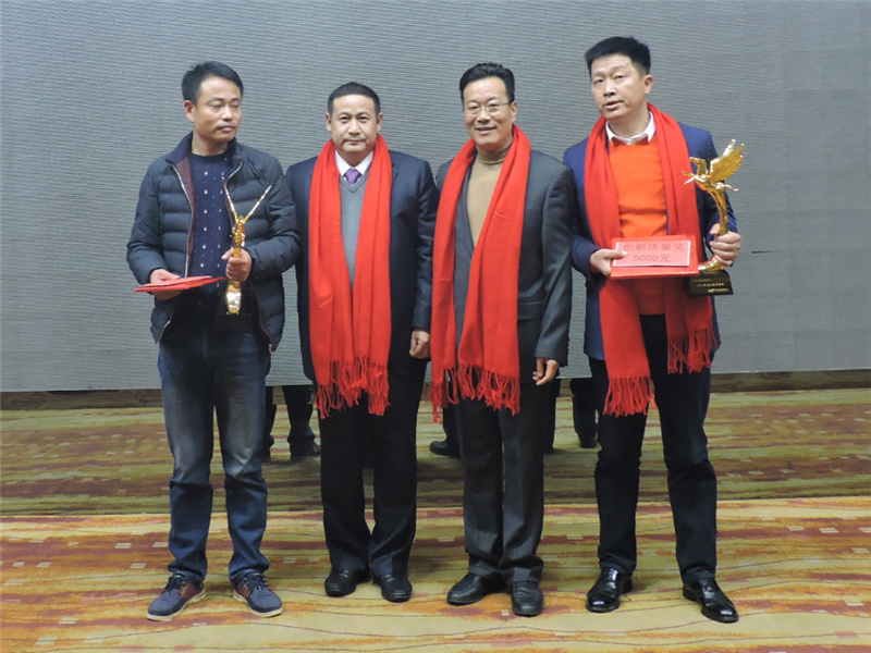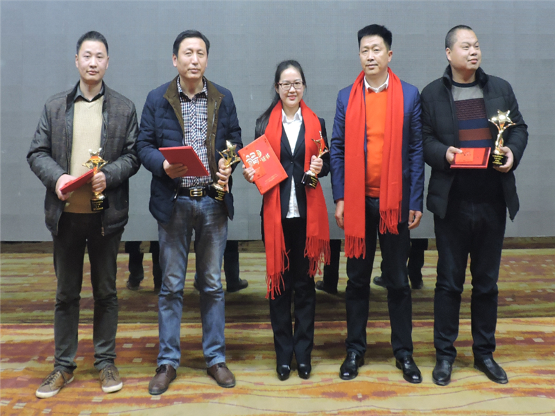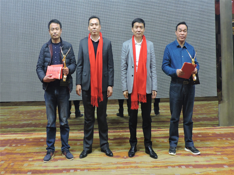 天馬建設(shè)集團(tuán)“2016年度優(yōu)秀員工——天馬之星獎”:“中冶南方國際社區(qū)一期四標(biāo)段項目”項目經(jīng)理 張勇;“江騰廣場項目”技術(shù)總負(fù)責(zé)人 王詠鐵;“天馬建設(shè)集團(tuán)”財務(wù)室 汪珍才;“德成國際文化創(chuàng)意軟件園一期A區(qū)工程”現(xiàn)場負(fù)責(zé)人 劉澤詠。頒獎人:集團(tuán)監(jiān)事會主席張幼明。