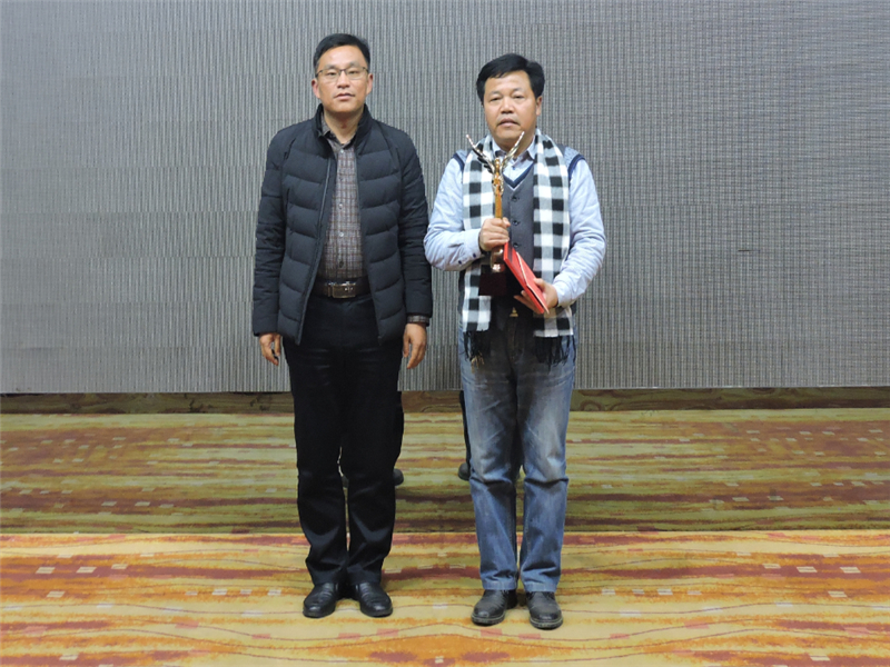 天馬建設(shè)集團(tuán)“2016年度引進(jìn)人才獎”:集團(tuán)總工程師余勝利。領(lǐng)獎代表為萬燕。頒獎人:街道謝主任。