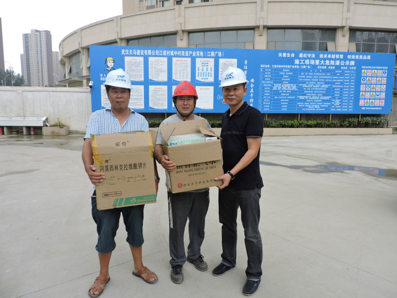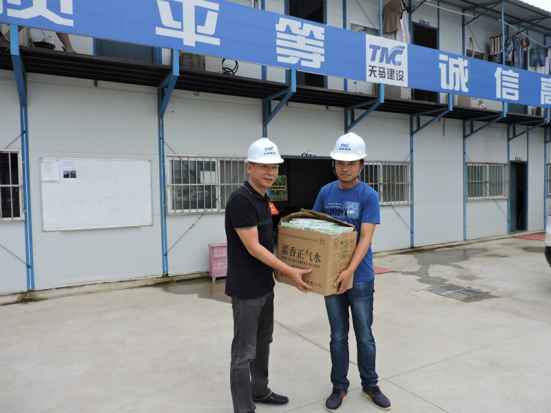 8月2日至5日,天馬建設集團總工余勝利帶領辦公室、工程部、策劃部一行人,冒著高溫酷暑,對集團各項目工地開展了“夏日送清涼”慰問活動,給一線工人們送去了綠豆、人丹、藿香正氣水等清涼防暑用品,讓一線工人們在酷暑中感受到了一絲舒心的涼意。