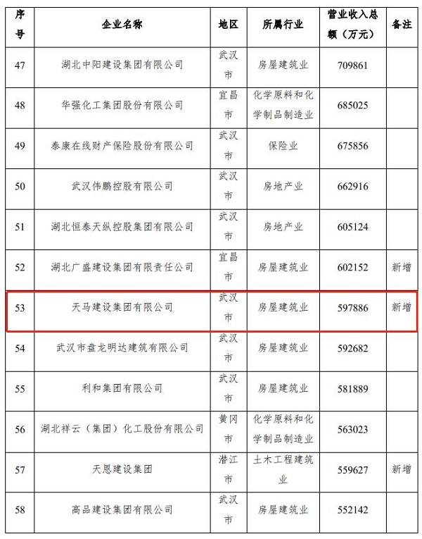 該排序榜由相關市直部門共同組織,以2020年企業(yè)營業(yè)收入總額為依據(jù)。集團自2018年開始連續(xù)4年入圍湖北民營企業(yè)百強榜單。這對于提振企業(yè)的發(fā)展信心,凝聚全體天馬人創(chuàng)新創(chuàng)業(yè)的干勁,起到非常好的促進作用。